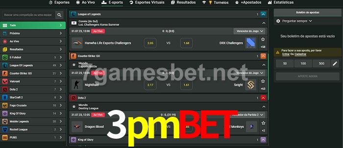 O 3pmbet oferece uma grande seleção de opções de apostas em e-sports com probabilidades competitivas